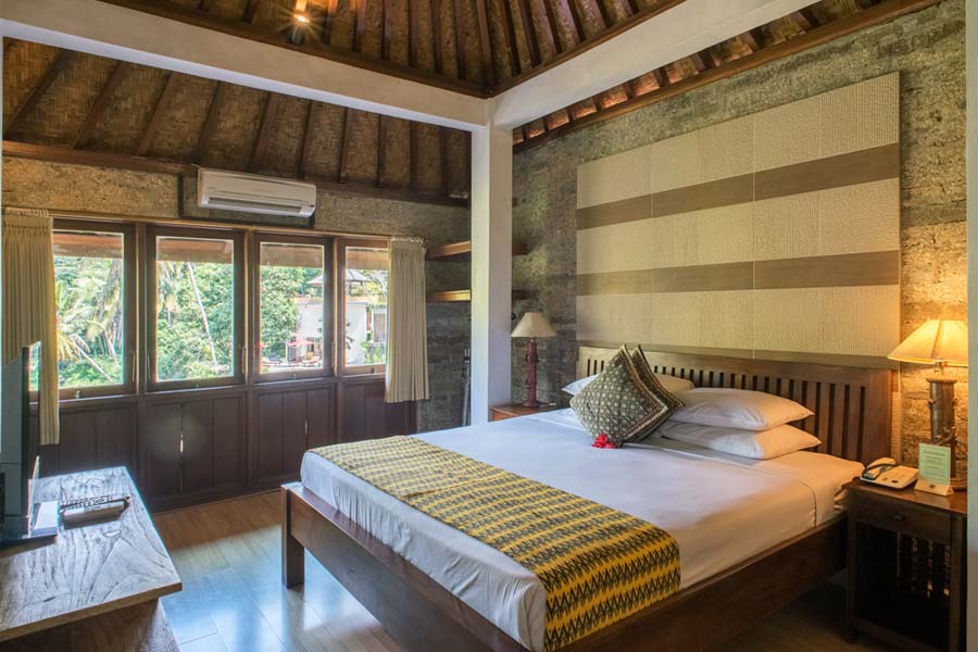 The rooms and furnitures are designed in traditional Balinese style.