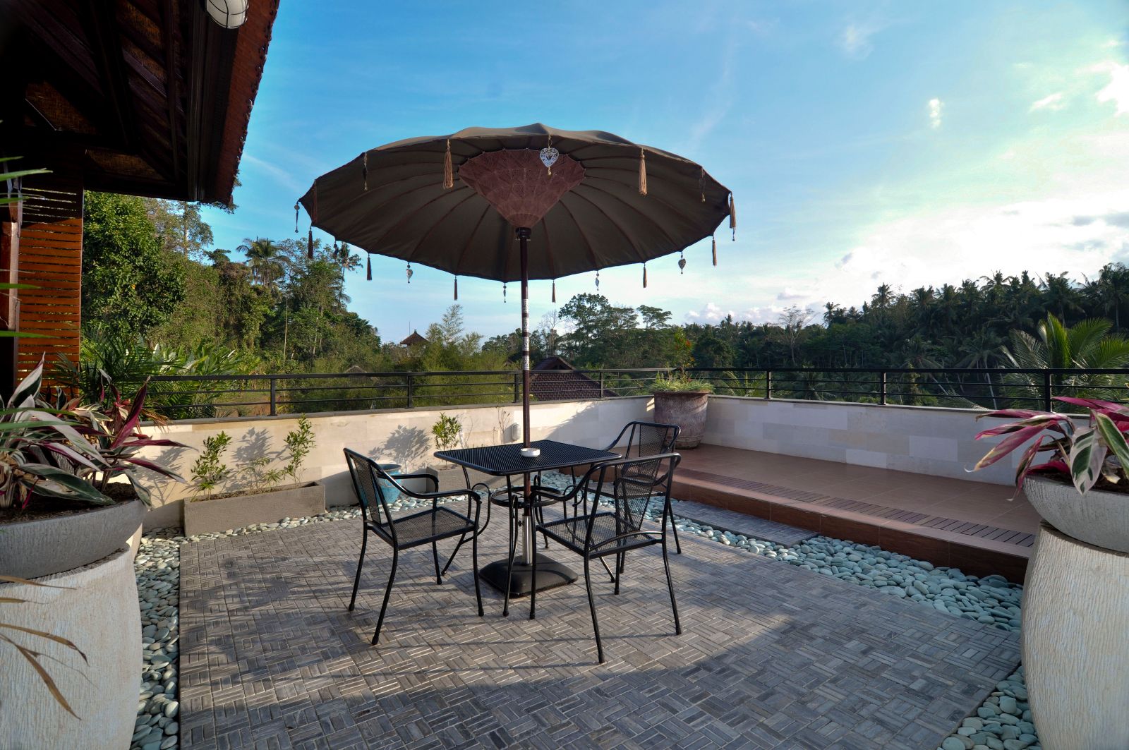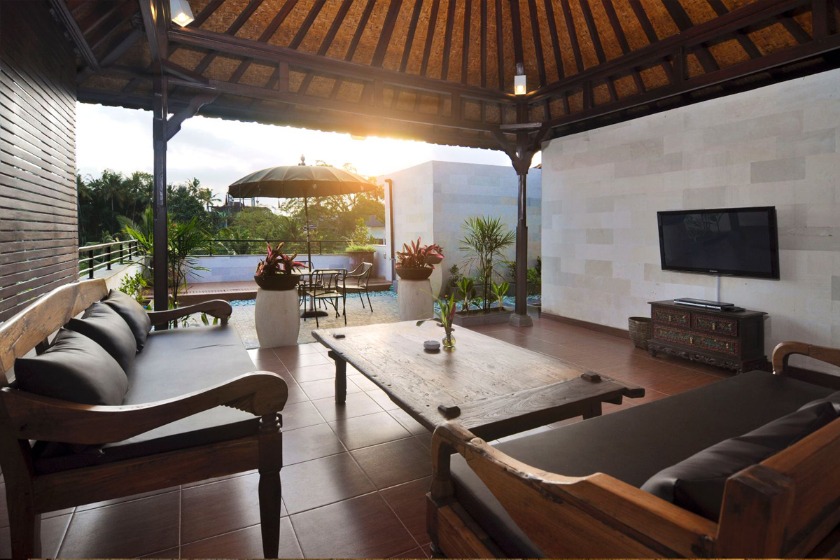 The rooms and furnitures are designed in traditional Balinese style.